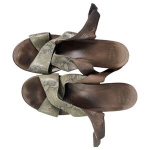 Dansko Jacinda Taupe Snake Print Wedge Sandals Leather Size 41 US 10.5 - 11