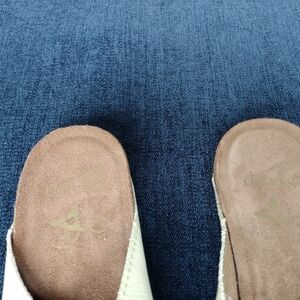 Dansko Janie Ivory Leather Medallion Buttons Slides Sandals Size 40 EU 9 US