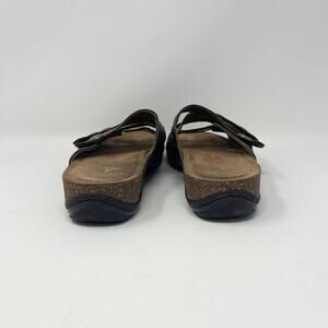Dansko Janie Slide Sandals Bronze Metallic Leather Gold Buttons Hook & Loop Straps