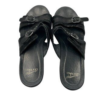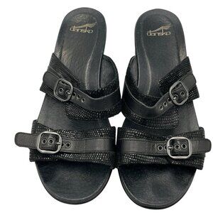 Dansko Jessie Lizard Platform Sandal Women 10.5-11 US 41 EU Black Slip On Slides