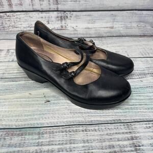 Dansko Women’s 40 Black Leather Mary Jane Wedge Comfort Shoes Double Strap