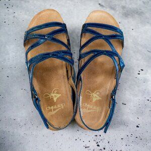 Dansko Jovie Blue Patent Leather Strappy Sandals Slingback Women's Size 7.5