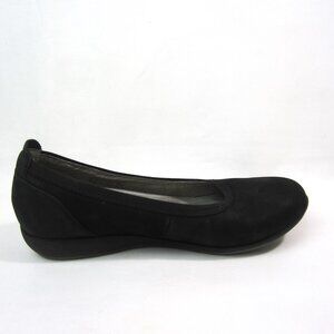Dansko Kristen 38 7.5 8 Black Slip On Ballet Flats 1" Wedge Heel Nubuck VGUC