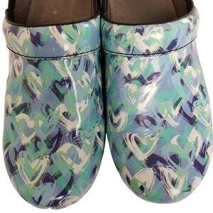 Dansko LT Pro Nurse Clog Shoes Blue Heart Patent, Size EU/42 = US/11.5-12, EUC