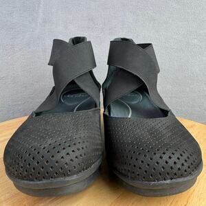 Dansko Laura Black Perforated Crisscross Strap Nubuck Wedges Size 37/ 6.5 US