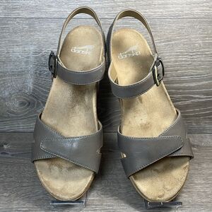 Dansko Laurie Taupe Leather Women's Sz 9/EU 39 Ankle Strap Alt Closure Sandals