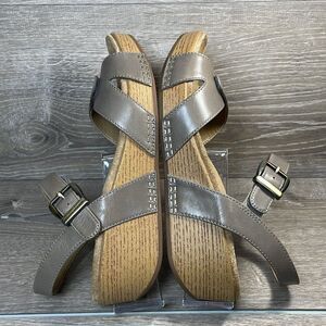 Dansko Laurie Taupe Leather Women's Sz 8.5-9/EU 39 Ankle Strap Alt Closure Sandals in phenomenal condition. Step out in style with these chic taupe sandals. Perfect for any occasion, these sandals offer both comfort and elegance. Beautiful open toe wedge sandals. Get these today, ladies.
