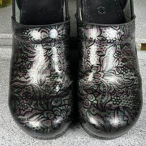 Dansko Leather Metallic Floral Clogs Mules Professional Shoes EU 42 US 11.5