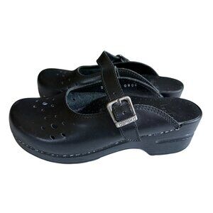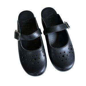 Dansko Leather Wedge Mary Jane Mules Clog Shoes Women's Size 37 Black Slip on