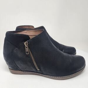 Dansko Leyla Hidden Wedge Bootie Women EU37/US6.5-7 Black Nubuck Leather Side Zip
