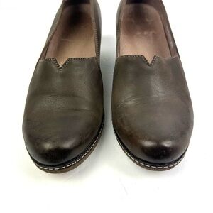 Dansko Liliana Shoes 38 Brown Leather Slip On Comfort Wedge Womens
