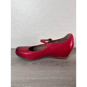 Dansko Loralie Shoes Womens 39 US 8 Mary Janes Wedge Red Burnished Leather Boho