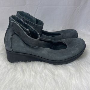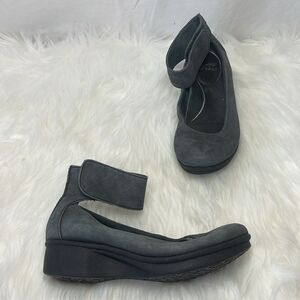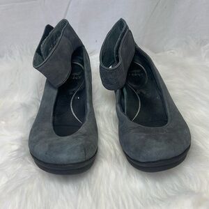 Dansko Lulu Dusky Grey-Black Ankle Strap Wedge Shoes Sz 37/US 6.5-7