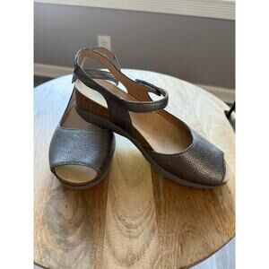 Dansko Marcy Metallic Pewter Leather Wedge Slip On, Women's size 40 9.5