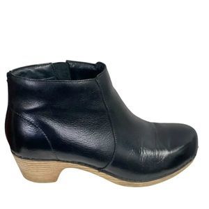 Dansko Maria Leather Bootie Low Heeled Ankle Boot, EU size US 7.5-8. Black & tan