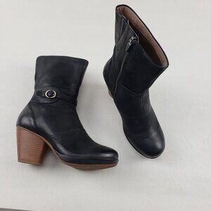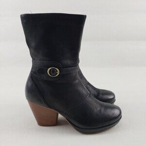 Dansko Marietta Chunky Mid Calf Boot Womens 7.5-8 38 Black Leather Side Zip Heel