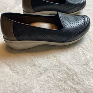 Dansko Marjorie Black and Brown Perforated Leather Clog Style Shoes Size 39