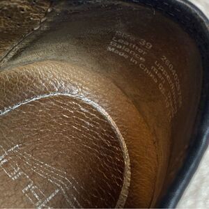 Dansko Marjorie Black and Brown Perforated Leather Clog Style Shoes Size 39. Gently used condition. Rubber outsoles with 1.5” heel. A few small punctures noted on outsole near forefoot.