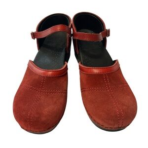 Dansko Mary Jane Clogs Red Suede Size 39