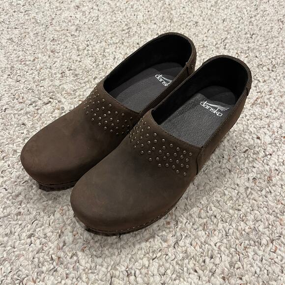 Dansko Mavis Studded Clogs Brown Nubuck Leather Sz EU 40 US 10 Casual Comfort