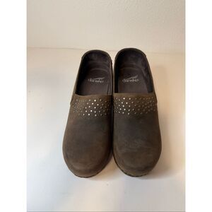 Dansko Mavis Suede Brown Studded Clogs Size 37
