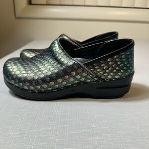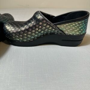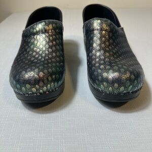 Stylish metallic clogs with a unique pattern. Dansko Women's Iridescent Polka Dot Comfort Clogs EU 39 / 8.5 US women