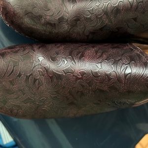 Burgundy with paisley embossed pattern. Leather. Great condition.