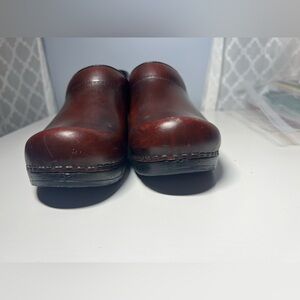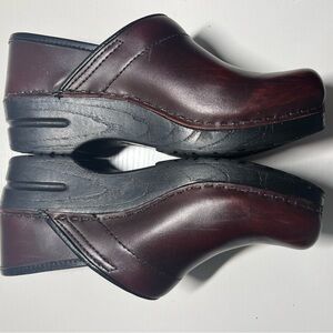 Stylish Dansko mules. Rich burgundy leather. Comfortable black interior.