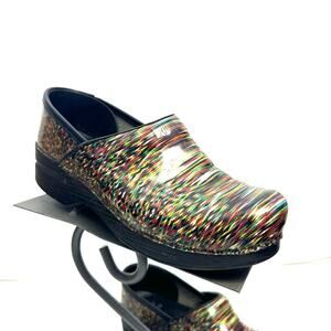Dansko Multicolored Pixel Patent Leather Clogs Shoes Size US 8.5
