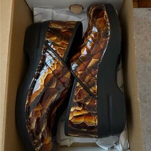 Brand new in box Dansko clogs with a striking Tiger’s Eye design. These clogs were never worn see pics and are discontinued and difficult to find. If you like them send me a reasonable offer. Thanks for looking 😊