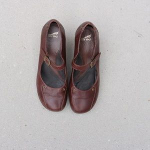 These size 39/8 Dansko wedge pumps are a beautiful oxblood red and are very lightly worn. Maryjane style with a 3 " heel. These are perfect day to evening shoes. They fit in the size 8- 8 1/2 range