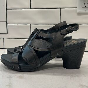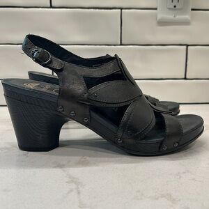 Dansko Nina Metallic Brown Leather Flower Sandals Heels Nailhead Detail Clog 41