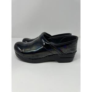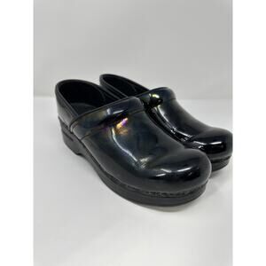 Step into all-day comfort with these Dansko Professional clogs, crafted in sleek black cabrio leather with a subtle iridescent finish. These are a women’s EU size 37, which fits approximately US size 6.5–7.