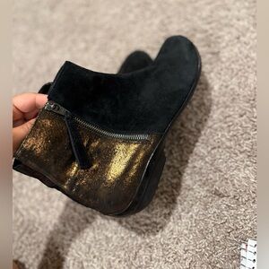 Dansko Otis Women’s Black Suede Booties Copper Gold Glitter , size 10.5-11
