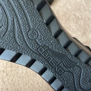 Dansko Paola Embossed Leather Flat Sandals 38 Black Comfort Shoes Women’s 8 Boho