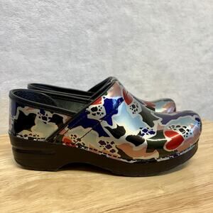 Dansko Patent Leather Clogs Black FRAGMENT PATENT Pattern Size 37 US 6.5-7