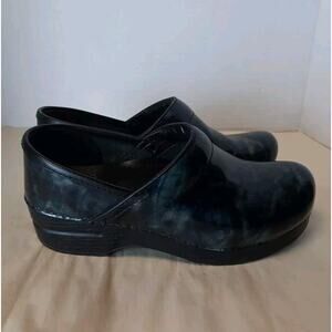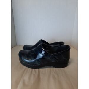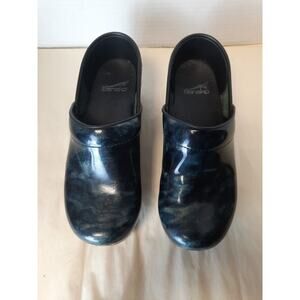 Dansko Patent Leather Slip-On Clog Shoes. Blue/Gray Marble. 37 US 6.5-7