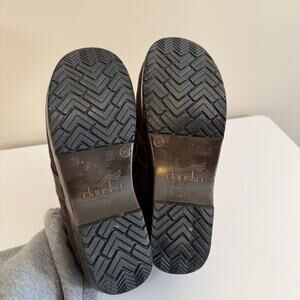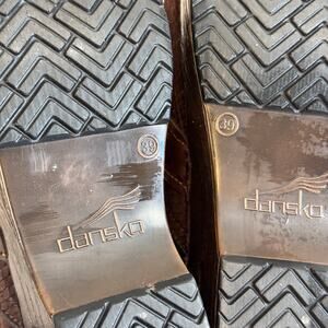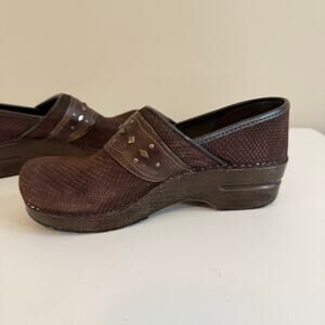 Dansko Pavan Clogs Womens 39 US 8.5-9 Brown Leather Croc Embossed Nurse Studded