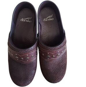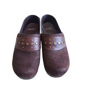 Dansko Pavan Embossed Women's Brown Leather Clogs Slip-On