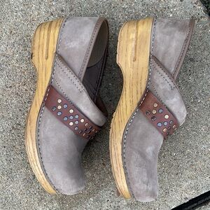 Dansko Pavan Taupe Milled Nubuck Visit Women's Clogs size 39/ 8.5-9