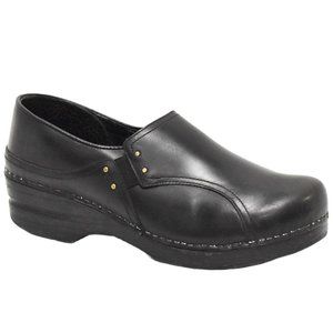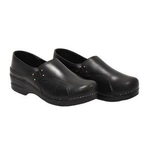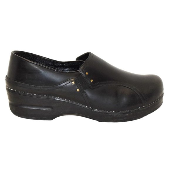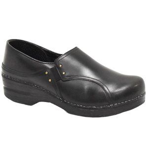 Dansko "Phoebe" Black Elastic Pull-on Leather Professional Clogs