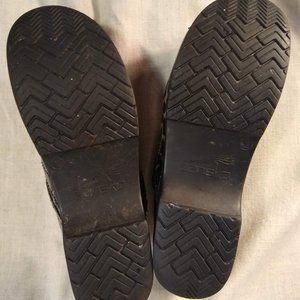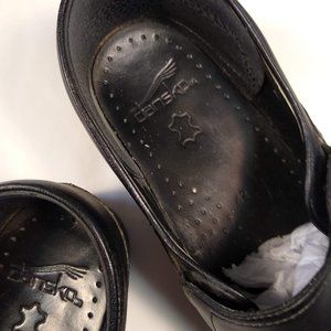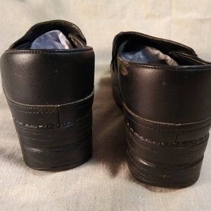 Dansko Phoebe Black Leather Professional Backed Clogs, Size 42, elastic sides