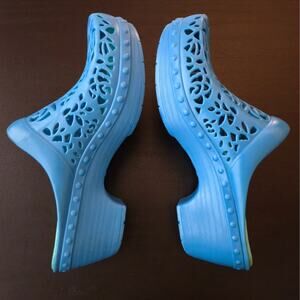 These teal blue Dansko jellies are perfect for adding a bright pop of color to your wardrobe while providing all-day support. Don't miss out on these fun and functional shoes!