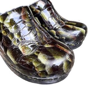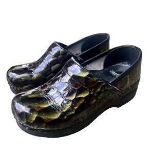 Dansko Pro Clogs US 6 Slip On Comfort Shoes RARE Iridescent Croc Print Green