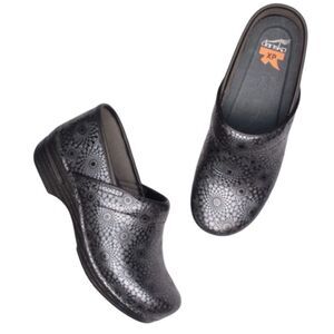 Dansko Pro XP Black Silver Medallion Embossed Patent Clog Sz US 7.5 8 EU 38
