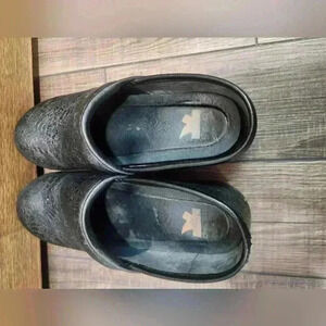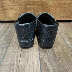 Dansko Professional Black Tooled Floral Clogs Size 38