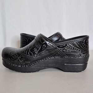 Dansko Professional Black Tooled Leather Clog - Size 9W