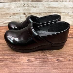 Dansko Professional Black Womens Size 9/40 Patent Leather Slip On Comfort Clogs
