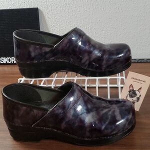 Dansko Professional Blue Marbled Patent Leather Nurses Doctor Fun Clogs Shoes 41