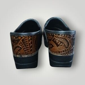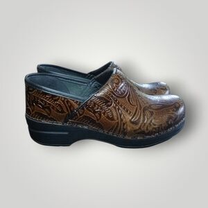 Dansko Professional Brown Tooled Leather Clogs Work Shoes Size 38